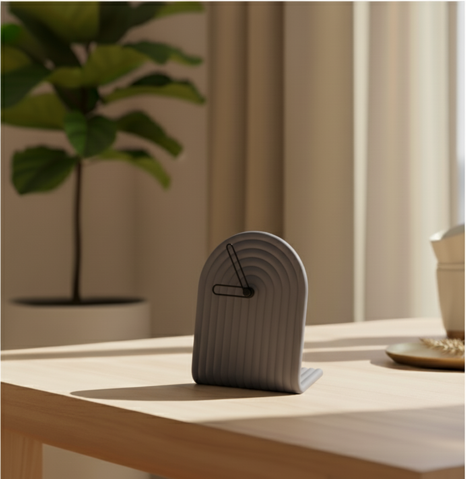 Este reloj no es solo un objeto para medir el tiempo, es una pieza escultórica que transforma cualquier espacio. Creado con tecnología de impresión 3D para lograr una precisión impecable, su diseño atemporal se integra perfectamente en entornos modernos, minimalistas y contemporáneos. Es el complemento ideal para tu escritorio, estantería o mesa de noche.
