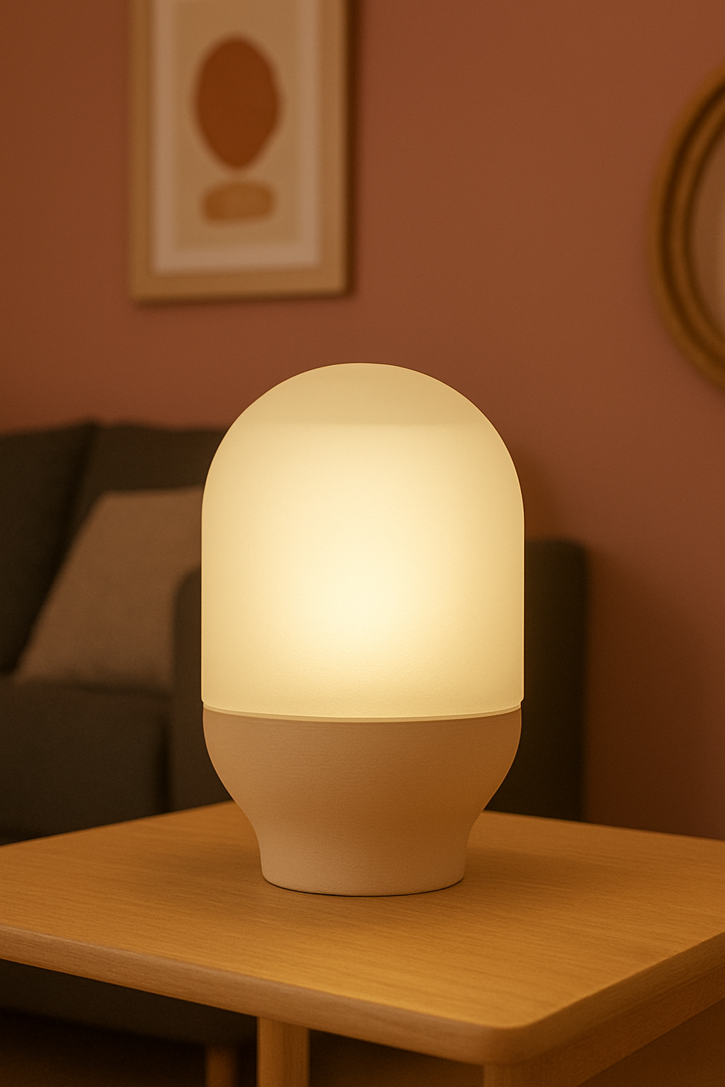 Cada lámpara es una pieza de arte creada con impresión 3D, combinando una base vibrante y sólida con una pantalla translúcida que emite una luz suave y difusa. Su luz cálida es perfecta para crear un ambiente relajante en la mesita de noche, iluminar tu escritorio o añadir un acento decorativo a tu estantería.